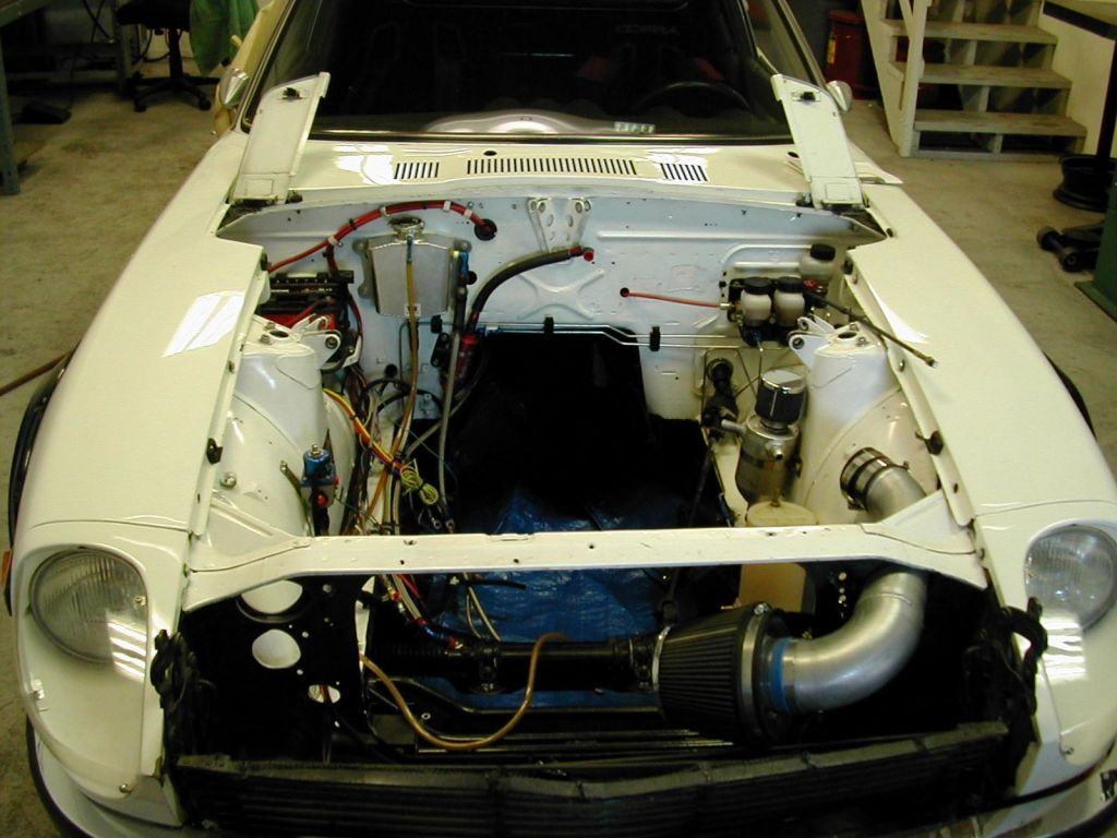 The orientation of the custom engine compartment strut mounts.
