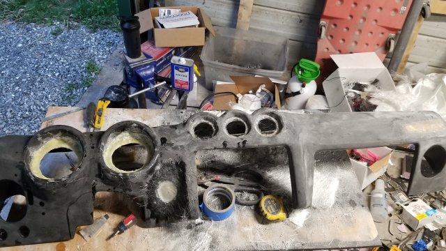 Now I'm at kind of an impasse about how to secure it to the frame. Originally I had planned on using the factory mounting holes and putting tapped spacers in between the cap and the dash and then securing with a bolt. But, between the cover not fitting perfectly to begin with, and then slightly warping with the flame treat it's off enough that the glove box won't line up. I'm not concerned about the center panel since I was just going to make a flat plate there either way but the whole thing is pretty flimsy. I can heat again and probably get it close but it will involve adding a lot of support to get rid of the flex if I don't address the void.