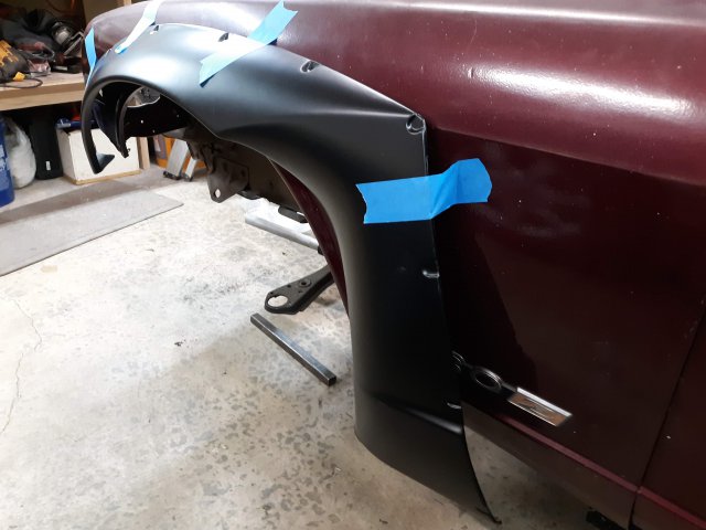 So my wife just test fitted the parts as best she could (6 months pregnant with a 2 year old running around) and took the following pictures. Now before saying they arent going to fit, i believe the part of the fender flare that "rolls in" in the back behind the tire is making direct contact with the metal not allowing for it to be fully seated. I believe that once the fender is cut away, the flares will fit properly. she is going to try the rear fender flares on later.