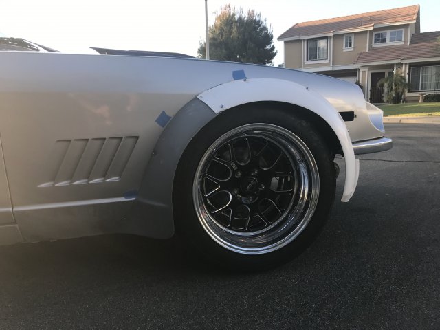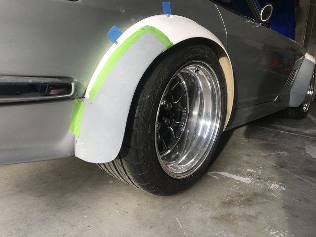 Just thought I would post up the results of my quest for wide fender flares that suited my taste and budget. After a long search I thought I would go with Fiberglass Mafia Z-Speed Flares, but once I got them I decided I wanted more flare on the rear side and less on the front. I finally figured out if I purchase another set I could take the front part of the rear flares of the extra set and graft them onto the rear part of the front flares of the original set, and the front part of the front flares of the extra set and graft them onto the rear part of the rear flares of the original set. Confused yet? Hopefully the images will help. It took much more work than I originally expected, but am very happy with the results.
