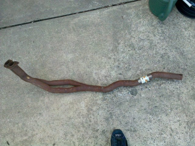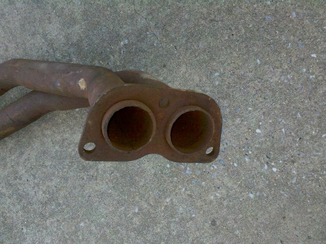 I would just buy some headers if I were you. You've struggled long enough with the stock exhaust lol. But I do have what I think is a New Old Stock downpipe for a 240z. It has two pipes that merge to one, and a flange that meets the manifold. It stil has a Nissan sticker on it I think so it has never been used. Just some surface rust. If interested I can send you some pictures and we can talk price and I'll get a shipping estimate to LA.