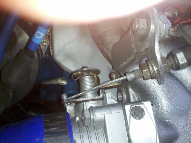 Ok that should give you an idea. I just had to drill a hole in each end of the cable. The end at the throttle body has a cotter pin in it to hold it in place, and the end at the linkage on the firewall has the spring holding it in place. I used a return spring attached to the throttle body and going down and mounting to the engine block using an unused bolt hole and another at the linkage to help it return closed faster. The two brackets were pretty easy to make. And the best thing was it was free, by cannibalizing the cruise control module off of a 280zx. The return spring setup was missing on the 240sx throttle body I used, that's why I had to use the springs. The only reason I did a throttle cable in the first place was because the stock linkage hit my fuel rail. But im pleased with the result. No sticky linkage bind anymore either. -
