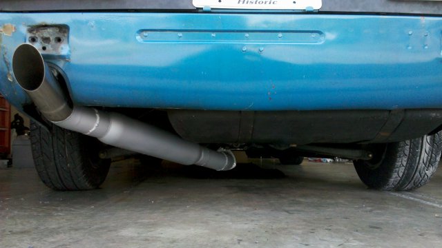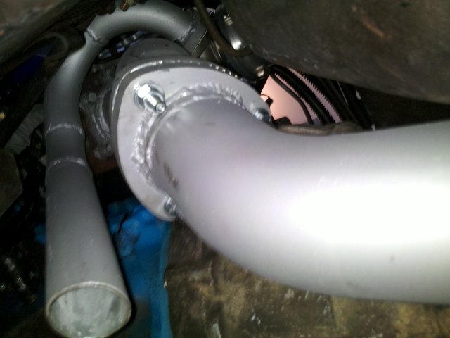 Here are a couple pics of it with the screamer pipe attached. It gets REALLY loud under boost lol. I sprayed it with some DEI high-temp paint, it has since flaked off of the pipe that the wastegate mounts to, but has held up everywhere else on the exhaust system. -