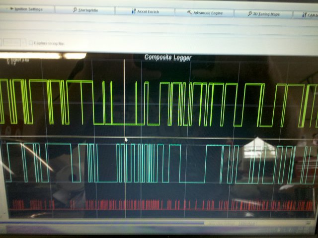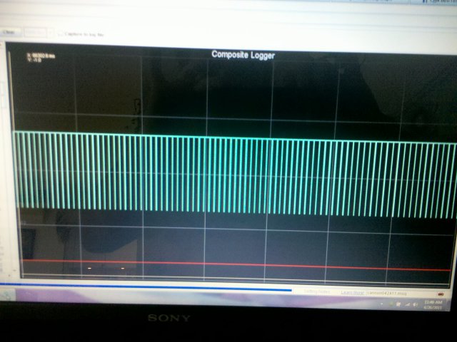 ^^^ Great Recap^^^ Just for the record, it probably is possible to use the opto-isolated circuit if you adjust the pots correctly. They seem to be shipped with both pots set at the same level, if you were to turn R56 a few turns clockwise you might see a better signal. Using the VR circuit is working great for me though, so I would definitely recommend it. Here is what my composite log looks like now while idling: That looks a lot better lol. I don't know why my earlier log was showing a cam trigger as well... I don't have one. But anyway I'm glad we were able to figure this out. I need to get a driveshaft fabricated then I can move onto some more serious tuning. I will post my MSQ as soon as I feel like it is good.
