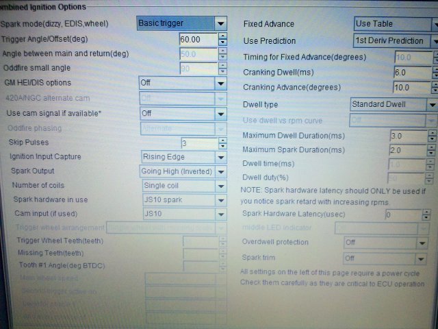 On my Tunerstudio it is under Ignition Setting then click Ignition Options/Wheel Decoder, and it is the first thing on the menu. Maybe with MS2 the settings are different, some one else who is running MS2 on the same firmware as you will have to chime in, but here is what my trigger settings are. I am basically running the engine on the same hardware as you, the stock CAS and the BIP373 for spark control, the only difference is in that I have MS3 on a V3.57 while you have MS2 on a V3.0. (These settings are not dialed in yet but the car is starting and idling at the moment) One nice thing about Tunerstudio is that under diagnostics (even in the free version!) you can log your trigger signal to really verify the working order of your CAS without doing the test procedure I described in an earlier post.