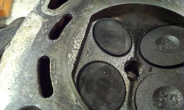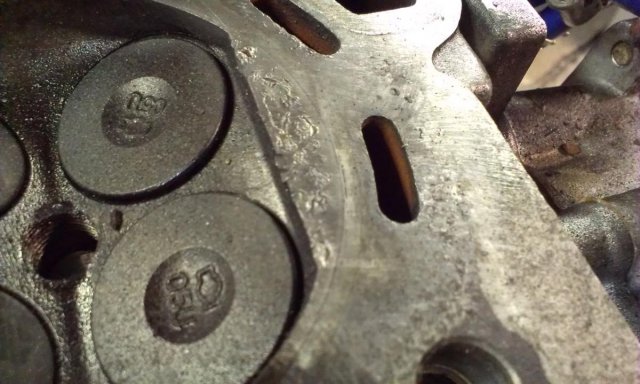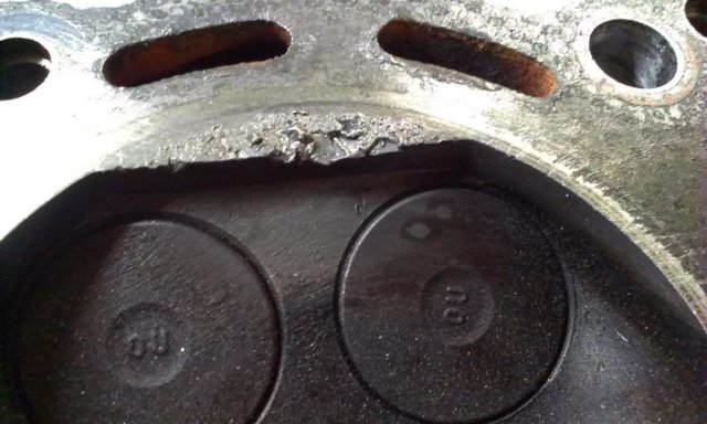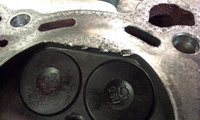 Really? Are you sure? These pictures are from cylinders 1 & 6. Cylinders 2,3,4 & 5 look absolutely perfect. It is an RB26 head. The engine was completely stock. One of the turbos was seized and missing a few of its ceramic turbine blades. Obviously the boost was jacked up too high. I don't get why this is only on cylinders 1 & 6 though?