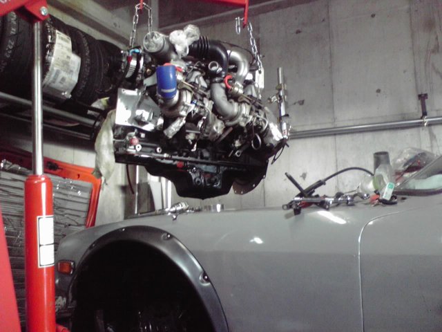 Because of the floor mount pedals, I place the seat at rearmost position with extended steering column and bent shift lever. I hate the arc of the shift knob because the motion center is still in the trans. Fixed the problem with an old stock of short shift kit for BMW. Now the shift lever pivot is in the pocket of choke linkage. Ergonomically improved. I am going to put dry sump system. Starting materials are L28 ARE pan and genuine RB26 pan. But I am not sure such shallow oil pan is necessary. LS7 has regular shape of oil pan -