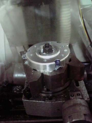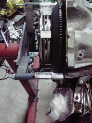 Old stock dry sump drive pulley mandrel. My mini CNC doesn't work because the control PC isn't there for now. fits well on crank pulley. Engine removed. Placed a set of long nut for spacer on the engine stand because I do not want to remove the clutch. Scribed a cut line inside the RB26 oil pan. -