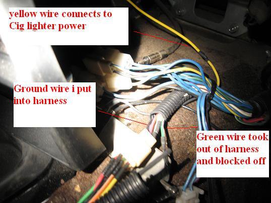 Red/Blue Stripe- (+) positive dimmer Green/White Stripe- (-) dimmer i didn't plug it to anything Black-Ground Blue-12 volt IGN/ACC White- (+) Left rear speaker White/Black stripe-(-) Left rear speaker Remember that the old radios didn't have a need for memory, so you have to source it from your battery, or Cig lighter....I chose to source it from my CIG lighter. I got a yellow wire to go with the Standard colors of today, and spliced into the CIG lighter battery wire. This way, i don't have to install a fuse, because the fuse to CIG will just blow. My radio has been working without a problem. I'm not an expert with electrical, so if anything is wrong about the way i have it wired let me know.