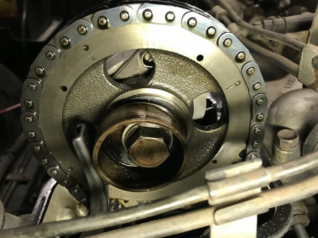 I took a few photos. I checked the timing and it looked fine except... the bright link was on the 3. Isn’t it supposed to be on the 1? I know the 1,2,3 are for timing chain stretch but my timing chain has maybe 20 thousand miles on it and I’m pretty sure when I put the head on I had the shinny link on the # 1 position. 🤔 then I started thinking about it... doesn’t the bright link move around with every rotation of the engine🤷🏻♂️ Man i suck at this. I finished my valve adjustments. They were almost all about .001 to tight. I retorqued the head bolts to 60 ft/lbs. I think they were torqued to 55 last time I put the head on because I was able to turn it a little tighter until I got a click at 60lbs i ran out of time to run a compression test so it’ll have to wait till Tuesday.