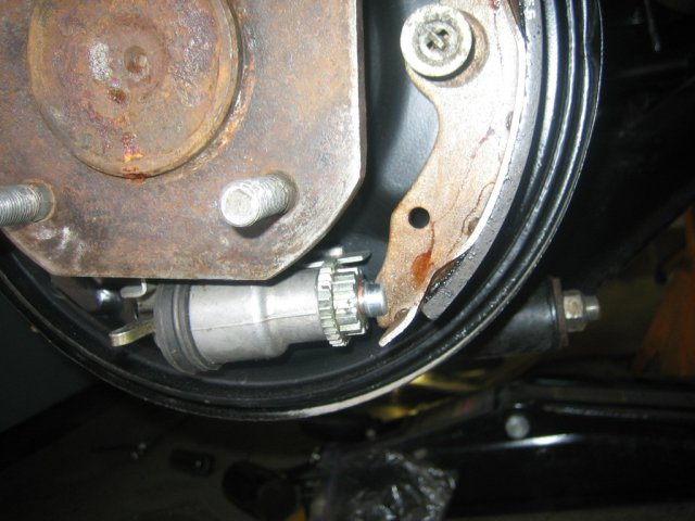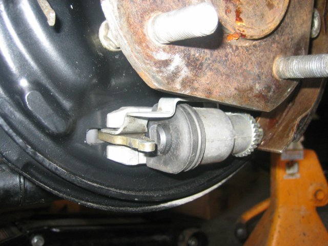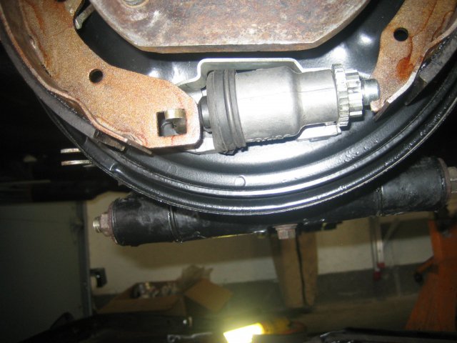 I guess I've had these apart to long, tell me what I am doing wrong! The pics are the passenger side of a 71. I thought the rear shoe slid between the cylinder and the emergency brake lever???? The shoe hits the adjuster lever, what am I doing wrong here??