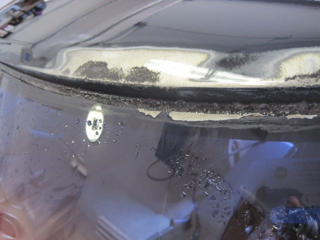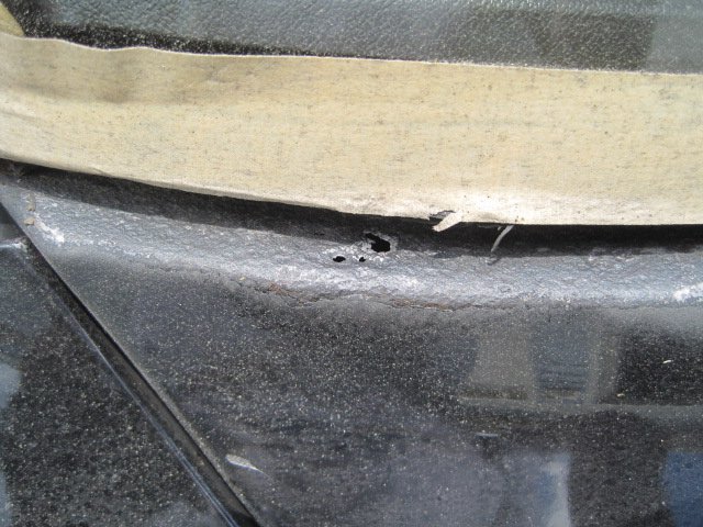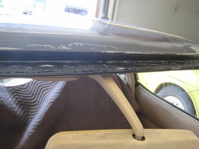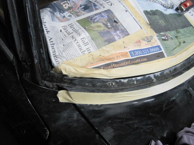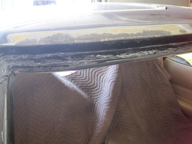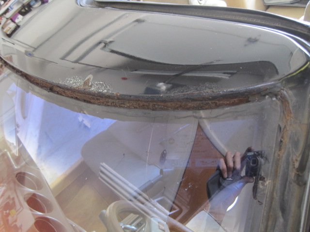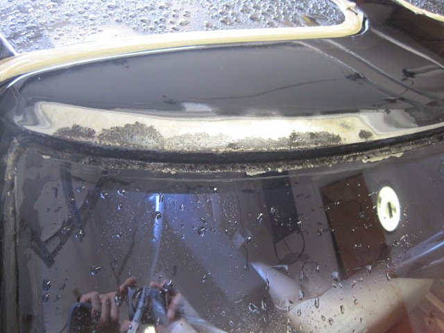 It is kind of funny to call this windshield repair since I broke the windshield taking it out:icon56: I was doing well until the tool I was using hit a snag and I leaned a little too much and next thing I know-crack! I had already researched prices for new ones and found someone to install a new one for 165$, so I could live with the loss. Let me backtrack for a second and say that I did follow my previous plan and sandblasted the area around the windshield before trying to remove it. It actually worked out well to keep the sand out of the inside of the car-even though sand still got in, so maybe that's how the water got in. I really only found one hole where it rusted thru, and that wouldn't have let water inside the car. I think the fact that the rust was so bad that the seal was no longer effective and that seemed to be proven by how easy it was to cut around the glass. The pitting was substantial and must have led to the leaks. I decided on por-15 patch for the repair. It would stop the rust, plus the putty like substance would fill the voids and small holes left by the pitting. I took care to only apply it in the molding area and not on any exterior surfaces that need paint. The exterior stuff I sprayed on por-15 paint to be later top coated with tie coat primer -then finish color. I haven't finished yet, so here are some pics of what I did do.