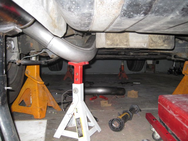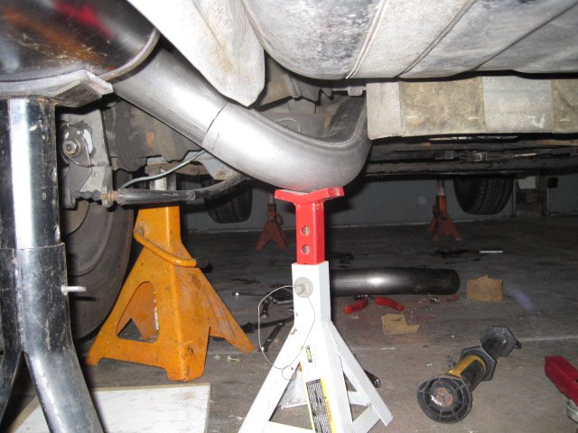 Well I am finally getting around to fabbing up the 3" exhaust for my daughter's 81 280zxt. Anyone that has done this project that wants to share some helpful hints -PLEASE chime in here:) I am planning on a 2&1/2" downpipe transitioning right into 3" the rest the way back. I have purchased 2 bungs so I can reinstall the O2 and later installal a wide band. I do not plan on running a cat. I purchased my mandrel stuff at http://www.mandrel-bends.com/catalog/. They seemed to have the best pricing and a sweet transition piece. I am using all 16 guage aluminized to a dynomax 3" inlet to twin 2.5's. I have started the project-starting from the rear. I think the "over the hump" part around the diff will be the most difficult. Infact, my first ? is the clearance in that area. I tried to take level pics to show how the pipe hangs around the diff area. The bend is maybe one inch below the lowest point-being the sway bar---do you think I have this up tight enough? I am worried about getting to close around the CV. I am planning on using 2 exhaust band clamps(butt type) to make the exhaust removable as needed. One band clamp will be near the front,probably right after the down pipe and the other will be wherever I have another set of factory pipe ends that I know will butt up squarely-probably around the diff somewhere. It looks like I will be able to use all of the original hangar hardware-atleast the rubber hangar parts are still good and I can modifly off of that. Any comments on the band clamps? I know the V style are better, but these are 8$ a piece. I used them on my duals for my 240 and they tightened up nicely, but I have no actual run time on them. I need to find some exhaust tips for the muffler. I was hoping to find some cheapo chrome tips for now instead of the high dollar SS. I know I am sounding like a tight ass here, but I have spent 2k in the last 3 months on this car and my daughter is attending IU right now and you know who is footing the bill. She absolutley loves this car though and I need to get it back to her soon.