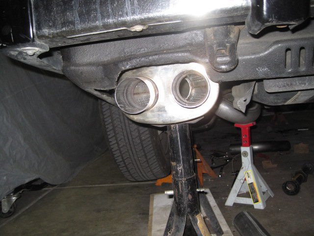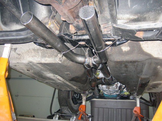I wish I could tell you, but my car is not finished. The car is at the paint booth now, then it will probably be months before I hear my fantasy exhaust. I just thought I might be the first to make a dual exhaust with a crossover pipe for the L6. I have never seen one before and the X pipes seem to do well for scavenging, so what the hell. I wam ending the exhaust with some cheapy glasspacks(12") on either end. This little fantasy has cost me a lot of time and money when you consider that you have to change around your fuel cell arrangement to have symetrical duals out the back. With no basis to go on, I am taking a guess on how this work and sound. 2" pipe also makes for a bit of a challenge because there are more options for 2.5" I had to fab my own X pipe since I couldn't find a 2" prefabbed. I figured dual 2" wouldn't be much bigger then a 3" single, so it's not overkill.