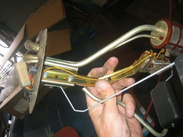 Would you believe that the return line was clogged in the fuel sending unit. After seeing the 100psi on the return side i know I missed something. I have had that same fuel sending unit out probably 3 times and you can see by the pic that it looks brand new. You will also see where I cut the return line to get at the obstruction. I cannot tell you exactly what it was, but I am betting it was somekind of muddgobber from a bug who built a nest in there. I couldn't get at with a piece of wire because it was in the curve of the pipe, so I just cut it off. The passage was completely blocked off, I don't know how the car ran this long