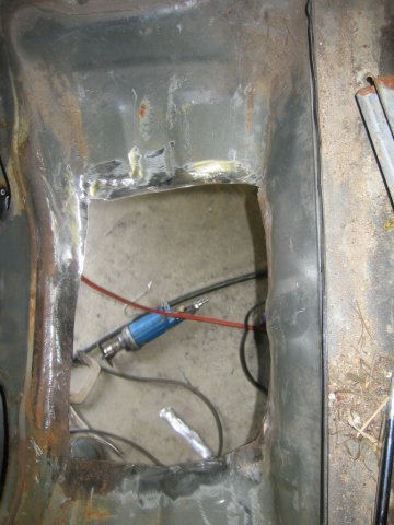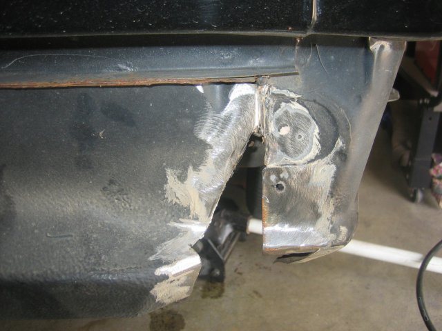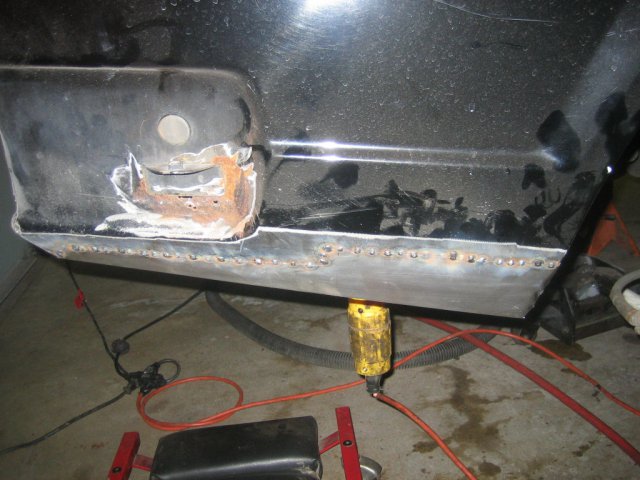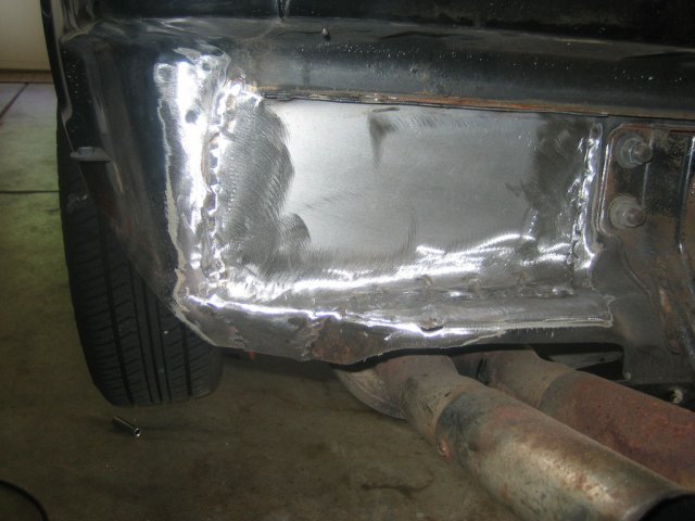 Well I got the car back long enough to do some work on the interior and bodywork. I finally got a chance to see the interior all together with the new panels and carpet and my great find on some original seats. I think when I get some of the more important issues dealt with I will repaint all the plastic in the car. The body work is also coming along. I was able to finish off the drivers lower rear quarter and I started with the back panel and passenger quarter. The passenger rear quarter was much more of a challenge because of the spare tire panel. I spent a lot of time making patterns for the sheetmetal for the inside panels. As you can see the spare tire area really ballooned out when I started looking for good metal to weld too. I only gave myself a day and a half to do all this and really had to rush to get it done. After getting all kinds of sh%t in my eyes(yes I do wear protective eye wear) and mig burn I was able to weld close all the holes before the daughter had to take the car to work again. This is a tough way to do a partial resto-I feel for you daily drivers trying to do this. The next major hurdle is the front windshield. I ordered the clips for the moldings and I have my por15 ready, but still debating whether or not to have someone else do the removal and installation. I think I have the skills and it would cut down on the logistical stradegy of getting someone there when you need them for the install.