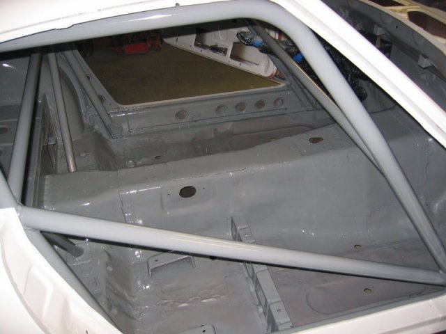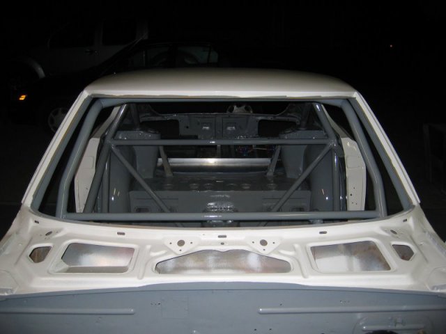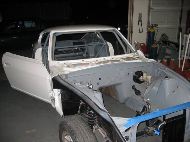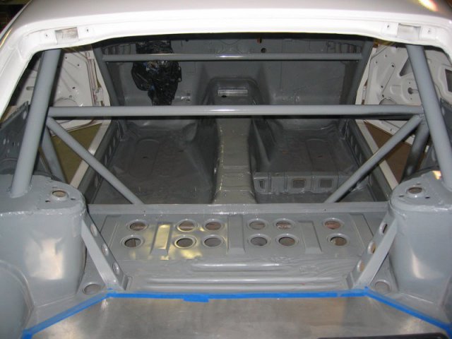That was our thoughts exactly! I got the idea from a NASCAR race I went to and the engine bay was grey, though it looks clean so off to the home center for some grey Rustolium. The firewall actually did not need to be cut for motor clearance, there was some rust in the fender well under the battery tray that ended up taking out a 18' section of the firewall. We just started the bodywork, we decided to fabricate a new rear roll pan because ours was soooooooo bad. I will post some more pics soon.