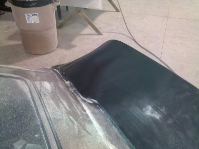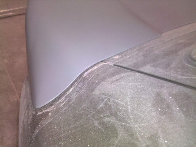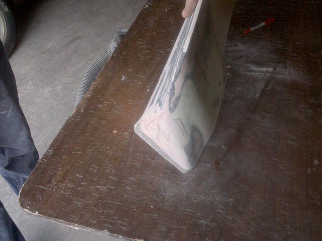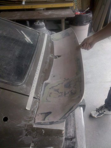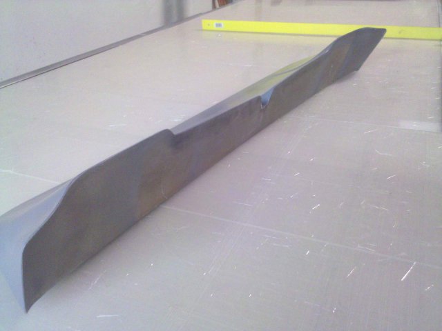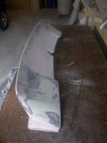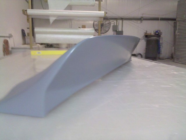 OK.. sorry, been so busy haven't been following things lately. Work on the tail is in full swing!!.... Jesse started removing the lower lip on the bottom, and is into the rounded tips. I only have this photo at this time, but will have more shortly showing the changes as they are completed. There are alot of questions about pricing, but until I have a full layup schedule completed on both FG and CF ( which wont happen until the mold is done ), I won't have a good idea of pricing. So i don't want to guess. I will tell you that the CF tail we are going to produce is going to be the best thing I can have made... NO FG in it at all!!... and shootingf for 3-4 lbs. ( thats with clear coat ) I'm excited to see the tail with the changes. It should be very special indeed. -