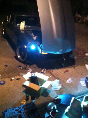 Hey I just got back from the sticks of upstate NY, it was almost a 4 hour drive in the Z. The two days before I spent installing my sway bars, Yota four piston calipers, ZX master, springs and the 5 way adj shocks, 5speed ACT road race sprung clutch and pressure plate, the Kameari flywheel, alum radiator and electric fan. The day before I left the HID's came in so I didn't have time to install them, that's todays project.