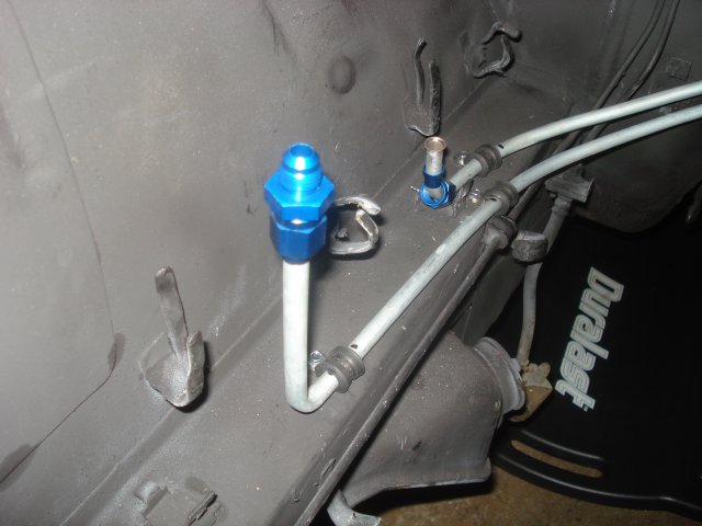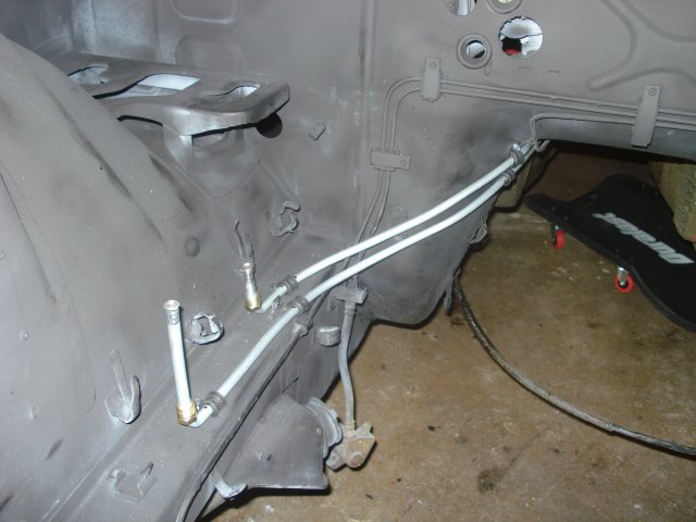 17. update, I have finished running all the hardlines. I got 3/8th tubing from jegs, I removed the stock lines and ran new lines where they were. It was a lot harder than I thought it would be. Being under a car that long was not fun. I got a flaring tool and double flared all the ends of the tubing. Heres some pics. This is the rear end of the car. where the lines will go to and from the tank. Here they are in the tunnel under the car. Heres the engine bay I hope it looks good so far. let me know what you think.