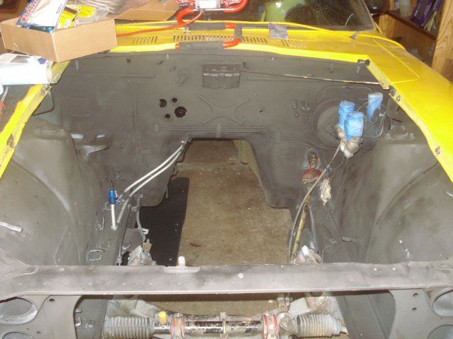 11. Step 1. Remove the old engine. This part is about as self explanatory as can be. The FSM gives very good instruction on how to do this. My advice to everyone is Take your time be safe. Make sure you put a jack under the trans when you remove the crossmember. If you cant remove the engine on your own you probably shouldnt be installing the new one. Step 2. (optional) Engine bay prep. My engine bay looked terrible from the POs paint job. Heres a pic. I didnt like the way it looked at all so I decided to strip it down and paint it flat black so it would match any exterior color I chose to paint the car in the future. 1st I used chemical stripper aircraft stripper from home depot. it came off pretty easy. Then I used a power washer to remove the loose paint and grease. After that I primered the bay with rustoleum auto primer from home depot. And finally I painted the bay flat black. I actually used a high heat rustoleum black. Its designed for grills and can handle the very high temps on the engine heat. It is strange because it looks grey in some light and black in others. Very happy with the color so far. Ok so I forgot to mention and this is very optional. I bought rust encapsulator and some pre from Eastwood.com. I would definately recommend pre. It's amazing for removing grease. I rust encapsulated the engine bay before applying the primer. I plan to do the rest of the car with the rust encapsulator so I bought a gallon of both. I also did under the fenders while I had them off Rust encapsulator. http://www.eastwood.com/rust-encapsulator.html Pre. http://www.eastwood.com/pre-painting-prep-gallon.html Ok checklist so far. Chemical stripper from home depot. 1 can about $8.00 rustoleum primer from home depot. 4ish cans $20.00 High heat grilll paint from home depot. 4ish cans $20.00 Rust encapsulator 1 gallon $130.00 Pre 1 gallon $50.00 Total thus far $228.00 Next up fuel system.