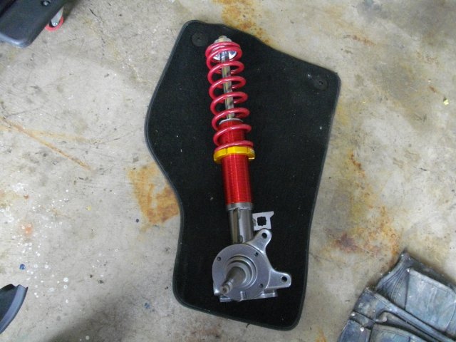 Got the front coilovers from ttt. Been working on installing them in my free time. Found some scary stuff. Bolts that hold the strut to the steering arm on the passenger side were barely hand tight. Also the strut bearing on that side was missing. No wonder it was so hard to turn that wheel. New one on the way then an official write up.