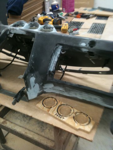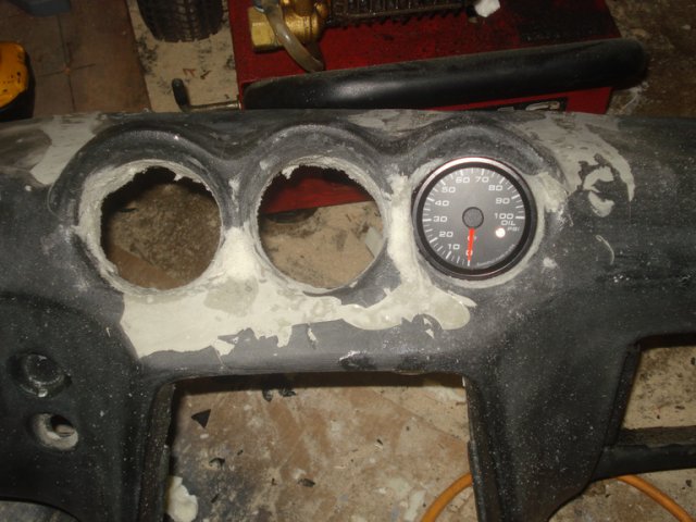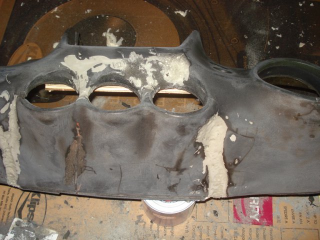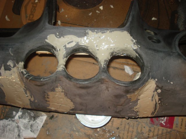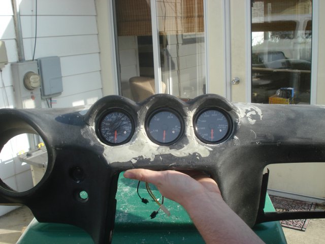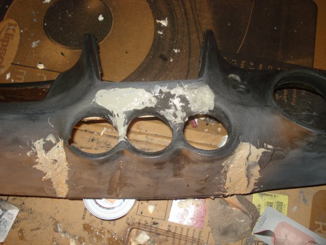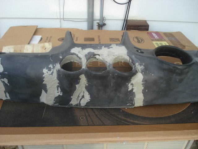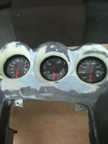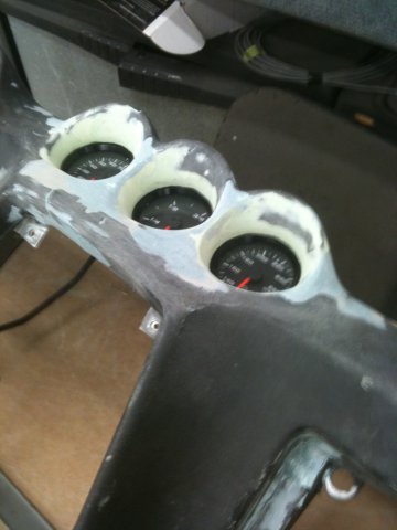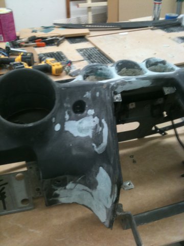 Minor update. A bit of work on the dash. Used some fiberglass bondo to fill the and smooth some of the spots on the dash. Used the bondo to fill in and shape the area where the gauges are going. Here are a couple of crappy iphone pics of the progress.
