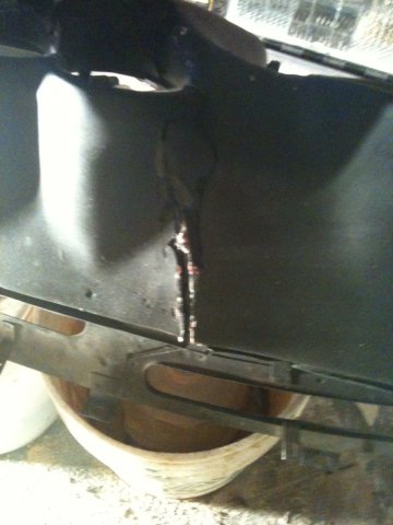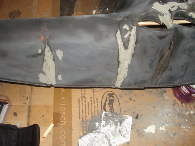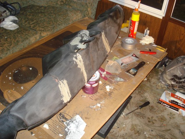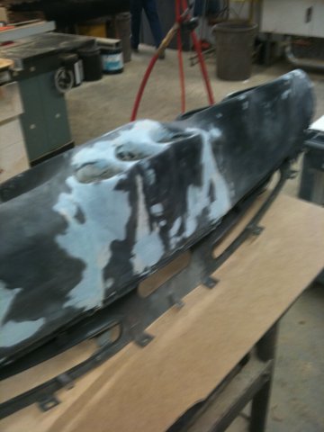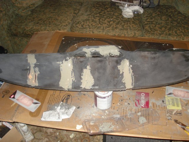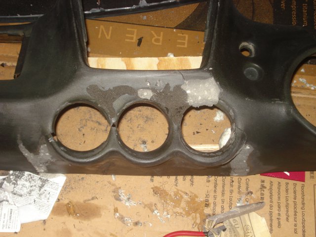Update: Worked on the dash a little more. The good news is it is one piece again. I used some wood to screw it back into place. The I used 60 second adhesive that I got from autozone. I glued it in a few spots underneath to get it to stay in place. Now Im in the process of rebuilding it. I am following the cheap dash repair alternative thread. So far I have filled some of the gaps with great stuff and sanded it down. It worked better than I had expected. I got my camera back and took some pics. So now I have to find some SEM Bumper repair. I plan to fiberglass the entire dash and make mounting and servicing my gauges easier. More Later.