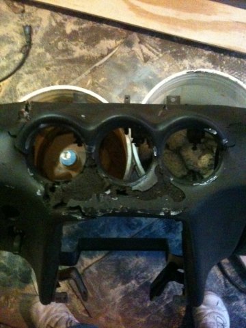 Dash isnt looking so good. When I removed the dash cap it was worse under there than I thought. To make mattters worse when I removed the dash foam from the metal frame it broke in the center over the 3 humps. Im gonna give it a little bit of work and see what I can do but I'll probably just do an alluminum dash.