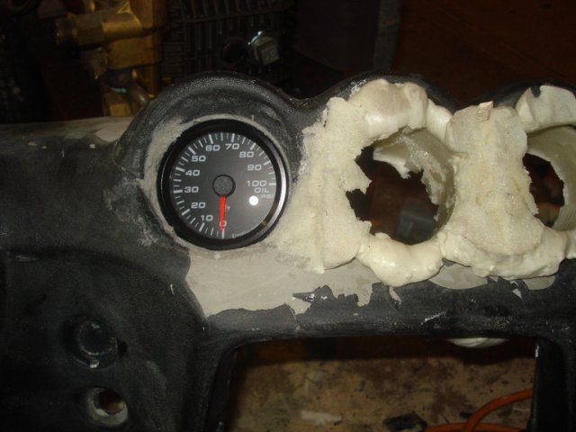 Update, Modified my original plan. Shaved the foam way down. Decided to use a board to mount the guages. This way they all stay pretty level and equal depth. Heres a few updated pics. Thats about it.