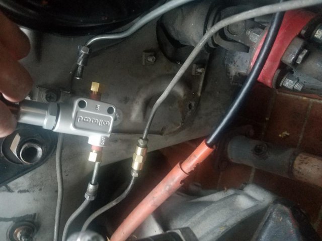this is a rough mockup of what I want to install. the top photo is a picture of my engine bay, the bottom is how I want it installed. this is where I am a bit confused, the stock lines in my car are perfectly suitable for an install, the brass fittings on the willwood prop valve are just not 10m so I cannot use the lines. -