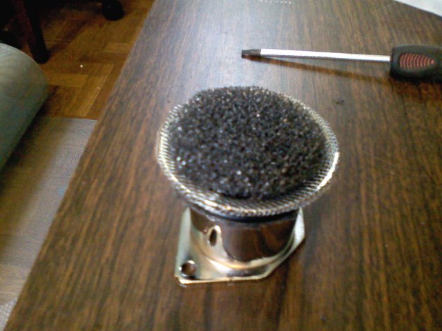 Being cheap, I wanted to find an affordable filter for my newly acquired stacks. Let me know what you all think and what changes should be made. My main concerns are: 1. Safety (spit back from carbs) 2. Filtration 3. Durability The filter is made of a piece of shop vac sock filter sandwiched between two screens. Picture "1" is of the base layer Picture "2" is of the filter material Pictures "3" are of the finished product
