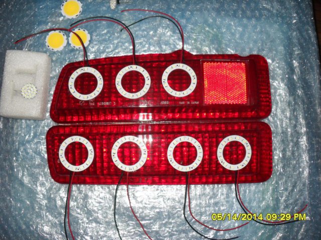 COB LEDs replacement came in today , still waiting on side emitting LED strips . This was the original plan , with COBs . Here's COB replacement . Here's the plan with sequential signal ( top lens ) . Your thoughts . I kinda agree with Hypertek . Second plan is to use side emitting LED strips ( running ) on the perimeter of the lenses , similar to Charger and Challenger , and small round LEDs in the center ( signal and brake ) .