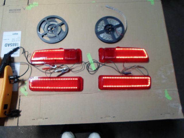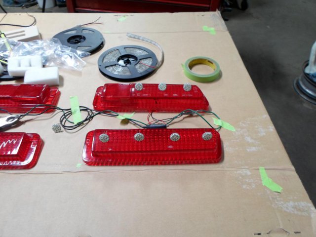 Running lights are done . Still have enough LEDs left to do another set or two . Turn and brake ideas . Need some ideas , people . I'm thinking round so I can have sequential turn signal . And with round LEDs , I can cut out face plates with any shape or pattern .