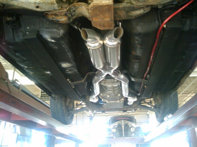 11. No resonators and dumped under the car, but dual 2 1/2", dyno'd 422 RWHP and 393 ft/lbs