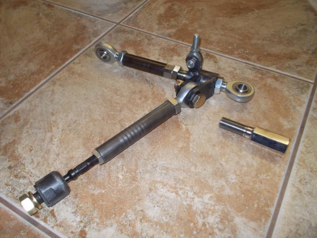 I have been putting together a new front control arm design. The outer portion of the main arm will have a rod end with high misalignment bushing in lieu of an outer ball joint. I used a double adjuster welded inside of piece of 1 1//2" OD tubing for the outer portion. The little rod end on top is for the sway bar link. The big difference is the TC rod. It uses a steering rack inner tie rod on one end and a pivoting rod end where it attaches to the main arm. That's the part I'm wondering about, will the pivoting rod end really make any difference compared to the normal solid connection? Any thoughts or comments on this? Mike Mileski Tucson, AZ
