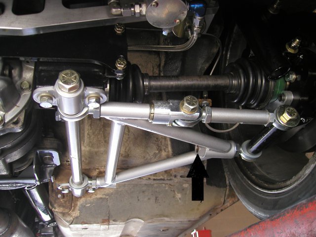 If I ever decided to add a rear bar, I have a 3/4-16 threaded hole in the adjustment sleeve on the front portion of the arm where it attaches to the upright (see black arrow). It's located in the area where you would attach the sway bar link. I could easily make up something that would attach there and link to the end of the bar. Mike Mileski Tucson, AZ -