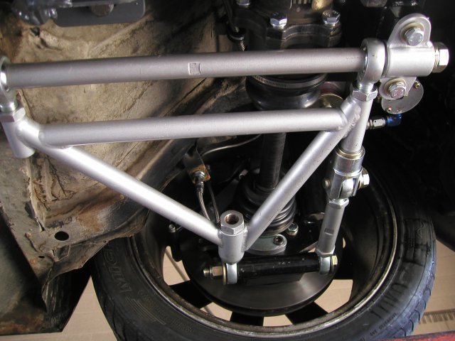 I also made a set of rear arms just for myself that I won't make any more of that I hope to have on the road pretty soon. It is the floating arm in front design (that has been race tested by someone else on the forum already). It uses heims instead of bushings for the inner pivots and the adjustability is great. I'll be able to give more useful information in a month or two. Mike Mileski Tucson, AZ -
