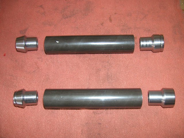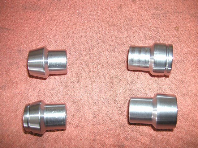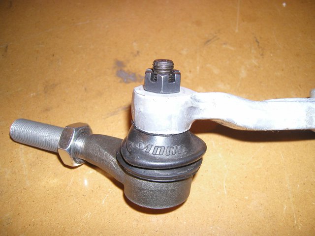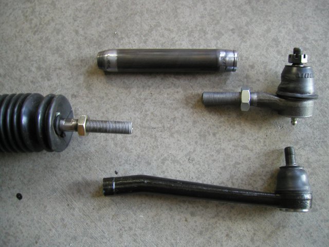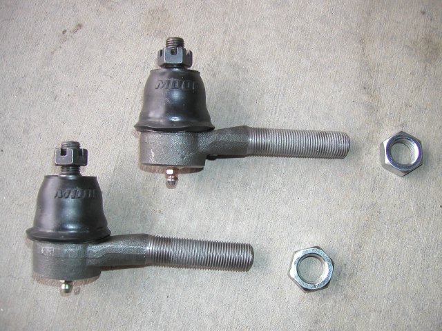 I bought a steering rack for my 1971 240Z from Motorsport Auto a couple of years ago and decided to install it and make some adjustable tie rod adjusters for it at the same time. However, I wanted to find a pair of standard tie rods that had the same tapered stud dimension as the stock Datsun so they would fit into the stock steering arms PLUS have one of them right hand threaded and the other left hand threaded. I went to a good old fashioned auto parts store that had a thick Moog catalog, which listed top and bottom taper diameters and started my search. After a while I found a pair of tie rods that fit 1963-1982 Corvettes. ES323R (inner passenger side) and ES323L (outter passenger side). ES323R has a 5/8-18 right hand (RH) threaded shank and ES323L has a 5/8-18 left hand (LH) threaded shank (see pic 1). The taper dimensions were within a couple of thousandths of those listed for the stock Datsun, even closer than the ones listed earlier in this thread. The stock Z steering rack has a 14mm-1.5 LH threaded inner tie rod on the driver's side of the steering rack and a 14mm-1.5 RH one on the passenger side. Since I already taps in both of these sizes, and I liked the style of the threaded tie rod tube ends made by Summit Machine, I ordered a pair of their 5/8-18 threaded ones, one RH and one LH, and, since they didn't sell metric ones, a pair of 1/2-20 ones, one RH and one LH. I drilled out both of the 1/2" ones with a 1/2" drill, which was also the tap drill size for a 14mm-1.5 thread. I then tapped a 14mm-1.5 RH thread in one and a 14mm-.5 LH thread in the other. (see pic 2). I purchased one foot of 4130 tubing (1" OD X 3/4" ID)and cut two pieces to the appropriate length. The tube ends slip right in and can then be welded (see pic 3). I may put some flats on the tubing so they can be turned with a wrench but they turn so easily by hand that I might not. Check out the remaining three pictures for some more details, one has the stock Datsun tie rod in it for comparison.