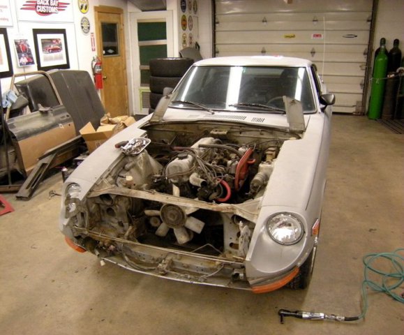 I think it's time to document my project. The car is a '71 240Z with 71k miles on it. It has spent it's whole life in the North East and has the rust and shoddy repairs to prove it. My plan is to do a semi-professional restoration and modify things as I go. It will sit very low, but I plan on setting up the suspension so that it has pretty good geometry since I would like it to handle at least as good as my other projects. The rear suspension will be from a '95ish Q45 and the front will likely end up being some mongrel I cobble together but is still undecided. I have started reinforcing the body as I begin to repair the rust in hopes of making it a little more rigid without adding too much weight. The goal is to be under 2500lbs and have at least 400hp at the wheels. Here is what I collected for parts so far; 240Z 5 lug 300zx hubs q45 rear subframe with diff and shafts 17x10 wheels that are somewhat light poly bushings for steering rack and coupler Recaro seats Cabin vents from some GM car Now on with the pictures to get this up to date -