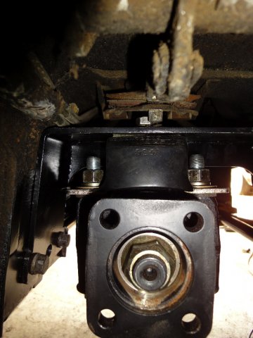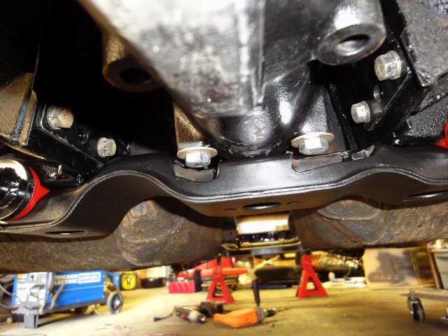 I have a GM 3201 tranny mount bolted to the top. I think you are referring to the stock configuration and not the RT config? -