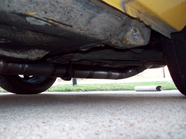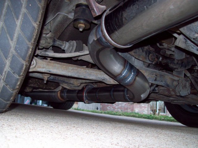 I installed the resonator. So, I ordered a 3x24" "straight-through" resonator from Summit. They say it's on BO and won't ship out till later this month. So I build the exhaust above. The next day, I get a notice saying that it had shipped out the previous day. Figures. It arrives in the mail, and it is not exactly "straight-through". Which actually is what I wanted, I suppose. The car needed to be much quieter. It is still quite loud. Part of this perception might be because this is the first non-turbo car that I've owned in a while--with a modified exhaust. I think that Magnaflow isn't helping muffle anything, really. Probably amplifying the drone. I need to add a couple more hangars and a final muffler tip (mostly to bring the exhaust away from the cabin--a problem I've heard of and now experience first-hand), but otherwise it's done. This spring break I am going to get started on something special...