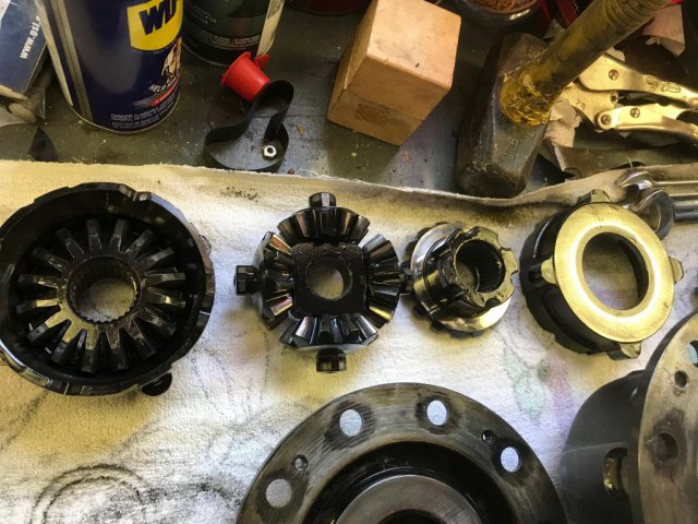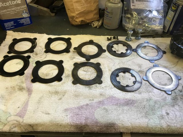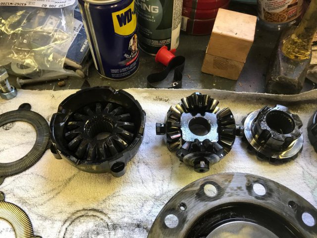 Finally getting around to rebuilding the differential and encountered something weird the diff had NO Spacers???? I am going to try and put the cover back on and it seems like there is not enough room for everything to fit. I have only the old clutch plate left over if I follow the sequence of : spring disk spring disc new clutch plate new clutch plate new clutch center section new clutch plate new clutch plate new clutch spring disc spring disc I did a trial assembly and the last spring plate is not in the tab slot, I am guessing that I am going to have to use 3 bolts in the ring gear holes to squeeze the cover on and hope I can compress the spring plates enough for the last spring plate to go in the tab? this seems awfully difficult to do without that last spring plate moving around but I guess with enough attempts it will go together. Having no spacers to remove sound normal to you? I looked up the factory manual and they do show a spacer. It might be possible the previous owner had it apart some time and removed the spacers? what for and why did my diff seem fine until it developed a clunk?
