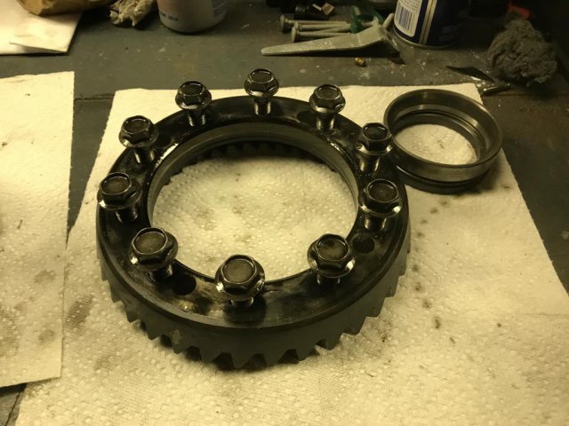 Here s a series of pictures of the removal and rebuild, first the teardown I reloaded the diff in the order I posted earlier, here is how much the last spring plate stuck out over the housing. I oiled up the plates, clutches, and spring plates and attempted to put the cover on, it took me three times to get it on, i used bolts through the ring gear holes to SLOWLY and GENTLY compress the cover on. When I felt the cover giving resistance that seemed like pinching the tabs I stopped and started over again. Finally on the third try it compressed all the way without the spring plate tabs getting out of alignment. Picture of bolts used, Half turn of each bolt until it closed