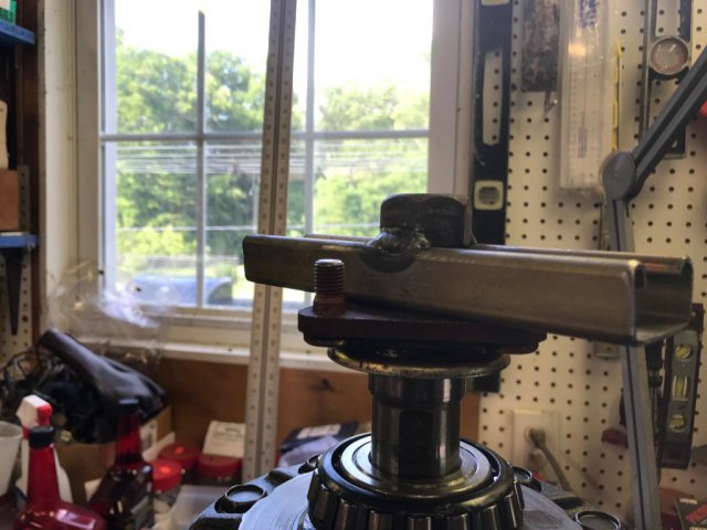 I made a tool to measure the break-away torque using the old R-200 diff stub axles a piece of Uni-strut and a large nut welded to the uni-strut. I elongated the holes in the Uni-strut to bolt up the stub axles. Actually the hole spacing works out so I can test again later at the wheel studs later once it is all installed. The test of just the CLSD assembly as shown in the pictures was 62Lbs. I then used my torque wrench and started at 25Lbs and increased it in 5 pound increments until I reached the point where it turned the axle then backed off a pound at a time to the point where it no longer turned the axle.