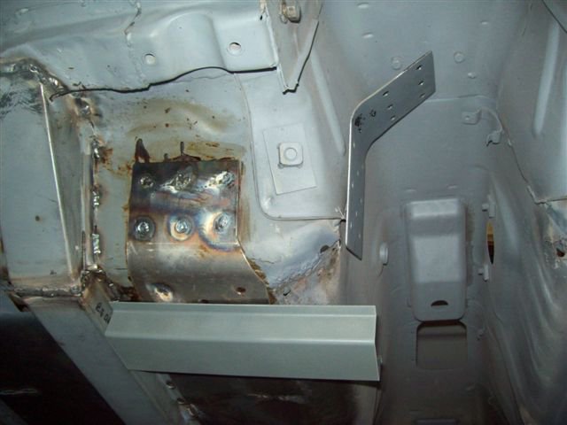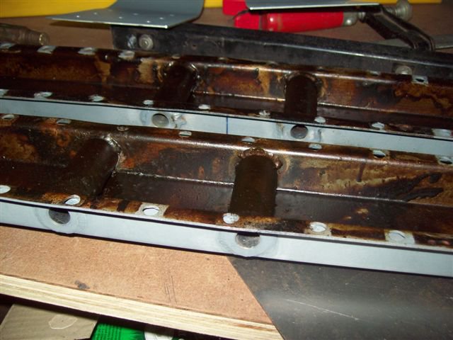 I was never really happy with the LSx/t56 JCI tranmission mounts, either 240 or 280 type, and as I needed new rails I decided to integrate mounting points into the rails. The rails are deeper at 30mm (about 1 1/4")but I figure the exhaust will probably be lower so it would not be an issue. Unfortunately I treated inside the rails before taking the photos and it is a bit difficult to see but I trust you will get the idea. I have TIGed the rails at intervals along the floor but have yet to MIG the new spot welds.