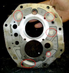 "All SR20 gearboxes have a "sandwich plate" in between the casing sections. On early types this has many holes to allow oil to move from the front to rear and vice versa. Nissan reduced the amount of holes in this plate and eventually went to a gated "trapdoor" type system on S14 gearboxes. This was done to solve a lubrication issue in early type gearboxes. Under drifting and motorsport situations the oil will have a tendency to sit in the rear section of the gearbox and thus starve certain gears of oil in the front section, particularly 3rd and 4th gear. This is a NISSAN design fault. It is imperitive that you ensure you use a late type sandwich plate or you block the oil holes to the rear of the gearbox to stop oil surge as per the picture to RIGHT. Please contact sales@ppgearbox.com.au should you have any questions. PPG will not warrant any SR20 sets that show signs of insufficient lubrication"