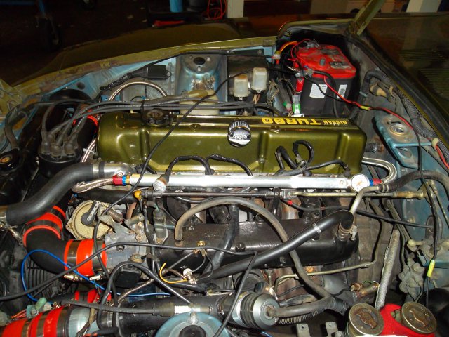 So currently ive made a few changes. Right now there is a new downpipe from MSA, and BOV. Changed the ECU to Z31 ECU with wiring harness, and tomarrow im picking up a MAF from a Z32 with plug. Next to work on is the Fuel lines, and fittings. Right now im getting the parts together for a E85 conversion which wont take place until a year from now so that im in an area that can supply me with fuel. More pics to come, might even try to work on the body a bit myself. I know a lot of people have been giving me compliments on the paint, so if you want i can get the color code. But im probably going to go with a flat black and clear coat(not rattle can).
