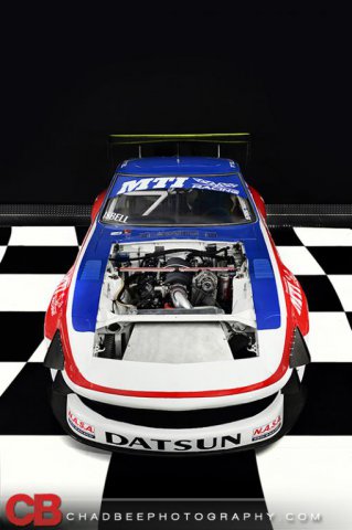 I am the VP of Operations for MTI Racing and we do our own machine work, engine building, composites work, etc.... I mainly work with Corvettes and GM platform stuff and one of my biggest competitors is LG Motorsports. I have nothing against them as they run a tight ship and we have mutual respect for one another. I (MTI RACING) offer an incredible carbon fiber 3 demensional wing ($4,000) but it is too large for my Datsun. It is made for my World Challenge Corvette. If it would fit thats what I would have. There is no better wing on the market. The one I use and have mounted on my car is an LG Motorsports GT2 wing. It Carbon Fiber, not 3 demential, and costs a fraction ($2,600) of the MTI wing. I have used 1" angle aluminum and intstalled a wicker I made the end plates myself out of a scrap sheet of Carbon Fiber and wrapped the edges of them with the aluminum wicker as well. I did them larger at first thinking that Indy cars have large end plates. After testing data shows the smaller ones work best and have less drag. The uprights are made by us (MTI RACING) in house and I have attached some photos of how we welded them to the frame rails and routed them through the deck lid. The wing uprights remain pinned to the deck lid at all times and when it shuts the holes in the mounting bracket that we made out of chromoly and are welded to the frame rails for ultimate support (the rear fiberglass deck lid would never support a wing at speed) the holes line up in each and you insert a race push to open style pin. The uprights we make have different holes to enable you to chose the rake setting of the rear wing based on the setup conditions of the car. I found that when I added the wing it increased downforce over my previous IMSA 3piece tail by 300%. It also made the car have high speed understeer which was easily cured by adding the front canards. I am very happy with the functional results of the addition of the wing, side skirts, and front canards. Remember that when wings, splitters, dive planes side skirts, etc are added to a car it will definitely add drag. There is a line you have to walk on where do you trim your car out to give you maximum topspeed and be able to add cornering speeds due to added aero. I also remind people that the cars spring rates will normally need to be changed according to what amout of downforce is added. I am in the process of redesigning the side skirts since I have side pipes now. I hope this proves helpful Thank you again for following my build........ -