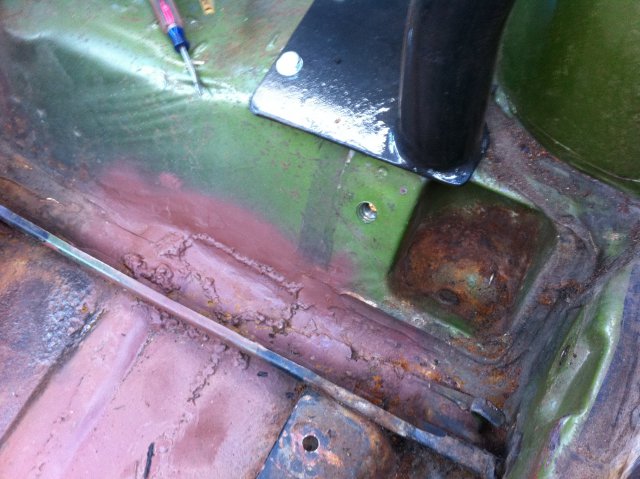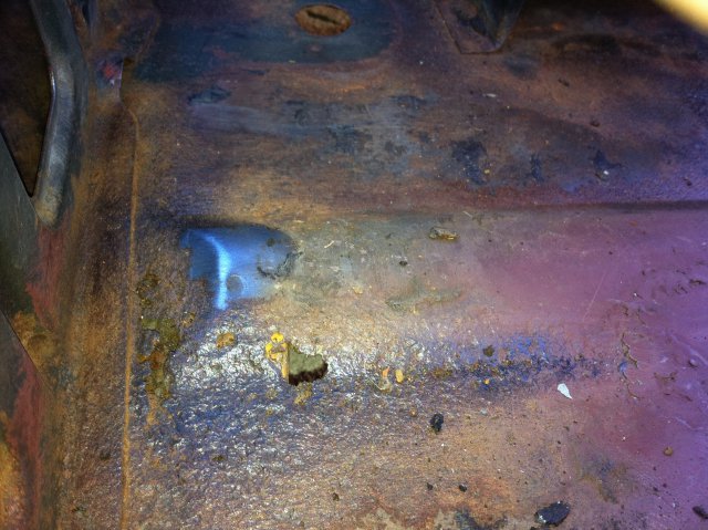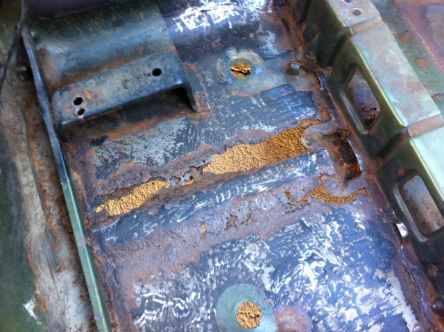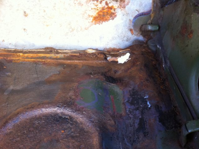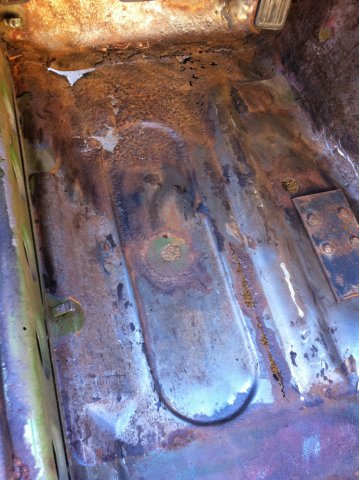 I bought the car for the SBC conversion, and the fact that it's been unmolested cosmetically. My intention is for a street/track car, but of course, I don't know how long I'll end up keeping it. I don't have any intention of doing a complete restore of the car, but I'd like to be sure that I'm not going to push the pedal to the tarmac one day, you know? There is additional rust in the car, but nothing that looks too bad. I appreciate the opinions; you've talked me out of patchwork. I'll look into ordering some floor panels next week and will plan on begging my way-more-knowledgeable-hot-rod-friend to help me get 'em in place.